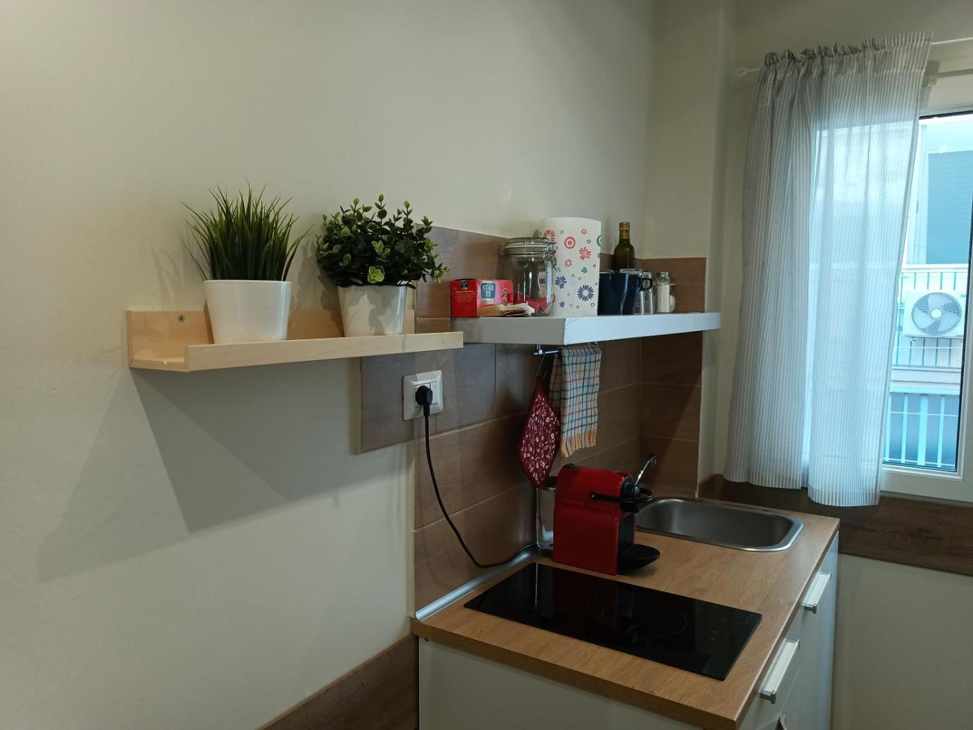 Questo appartamento con aria condizionata comprende 2 camere da letto e 1 bagno con bidet, doccia edi cortesia. Langolo cottura prevede frigorifero, microonde e piano cottura più macchina da caffè.